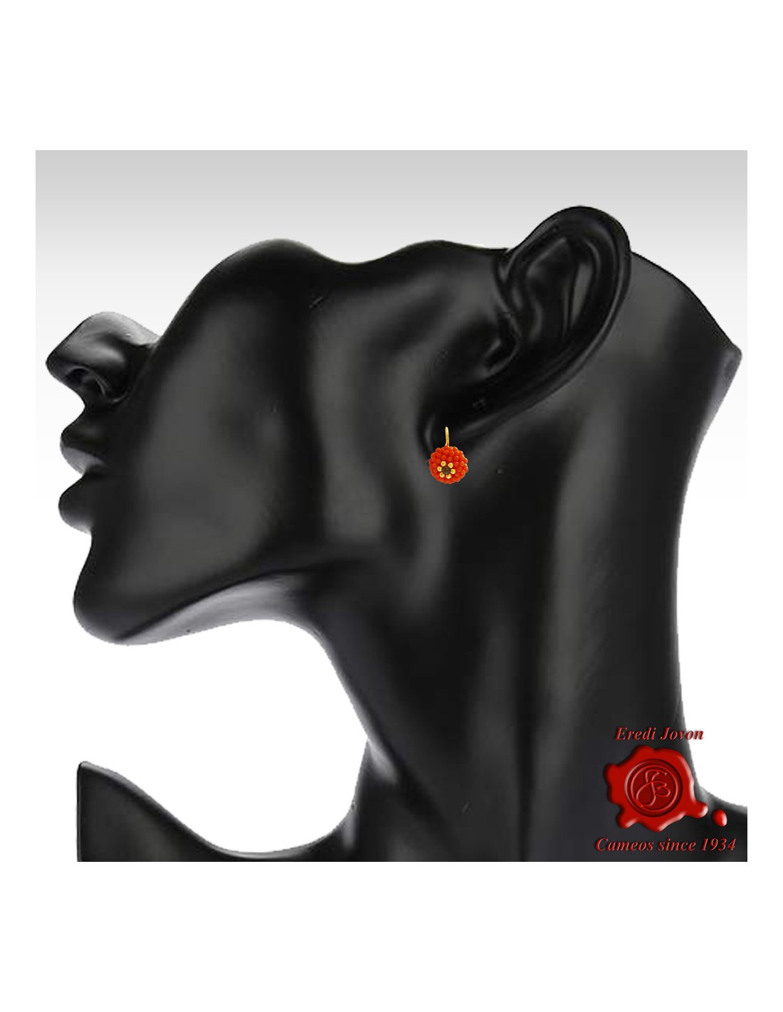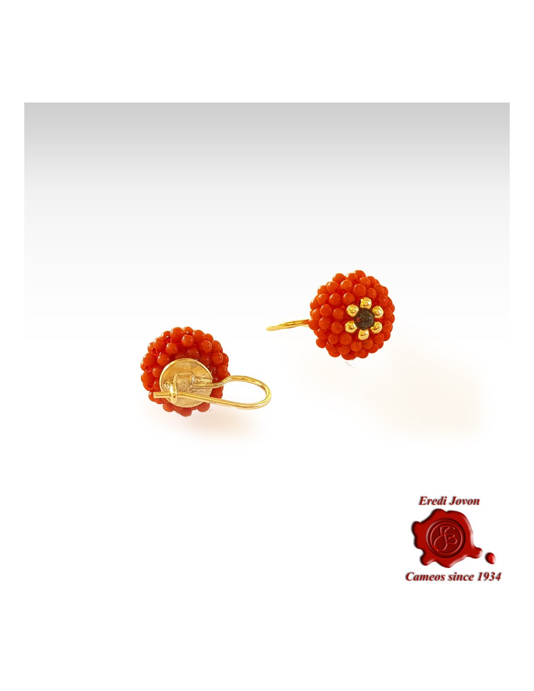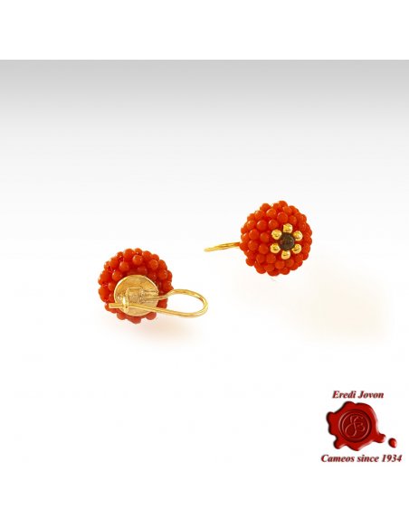 Description: genuine Italian coral earrings with rare "blackberry tessito" style work.