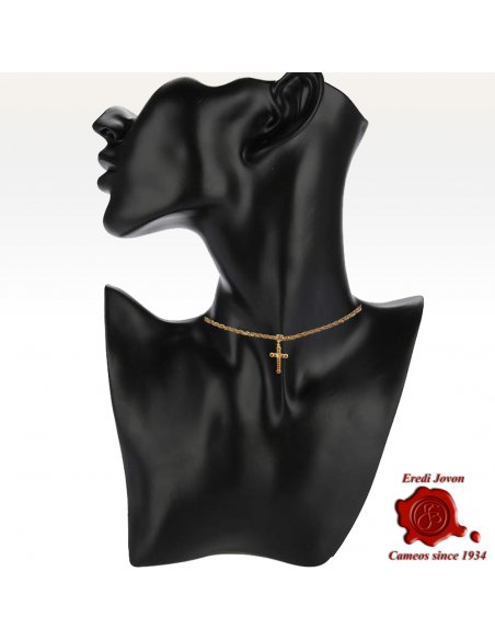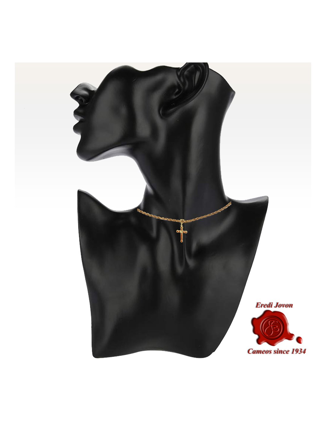 Description: The cross charm featuring red coral and red gold is an exquisite combination of elegance and spirituality