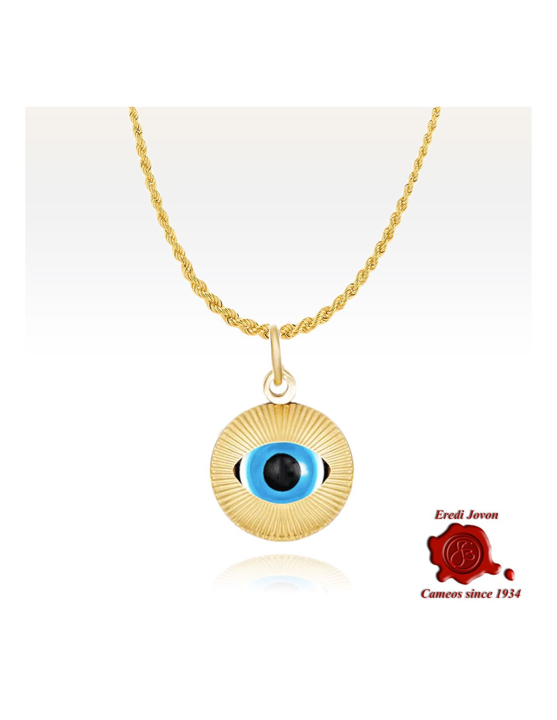 Evil Eye Gold Amulet - Also called "Nazar Eye" this genuine 18 kt gold talisman protect you against bad luck and envy - Wear on your necklace on in your favorite charm bracelet to ward off negative energies, curses and spiteful gazes. Made in Italy 100% Working!