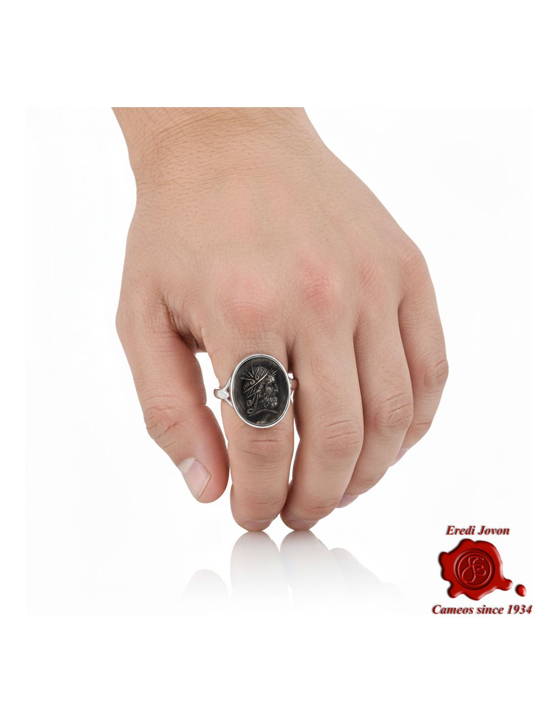 Description: Crafted with the mastery of Italian craftsmanship, the Hercules Vintage Signet Ring Silver by Eredi Jovon is a tribute to the strength born of courage and the nobility of classical myth. In the past, the signet ring was the distinctive sign of a person or family: engraved with an emblem or a symbolic face, it served to authenticate letters and decisions, representing authority and identity. Today, as then, wearing it means asserting oneself with elegance and self-confidence.