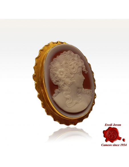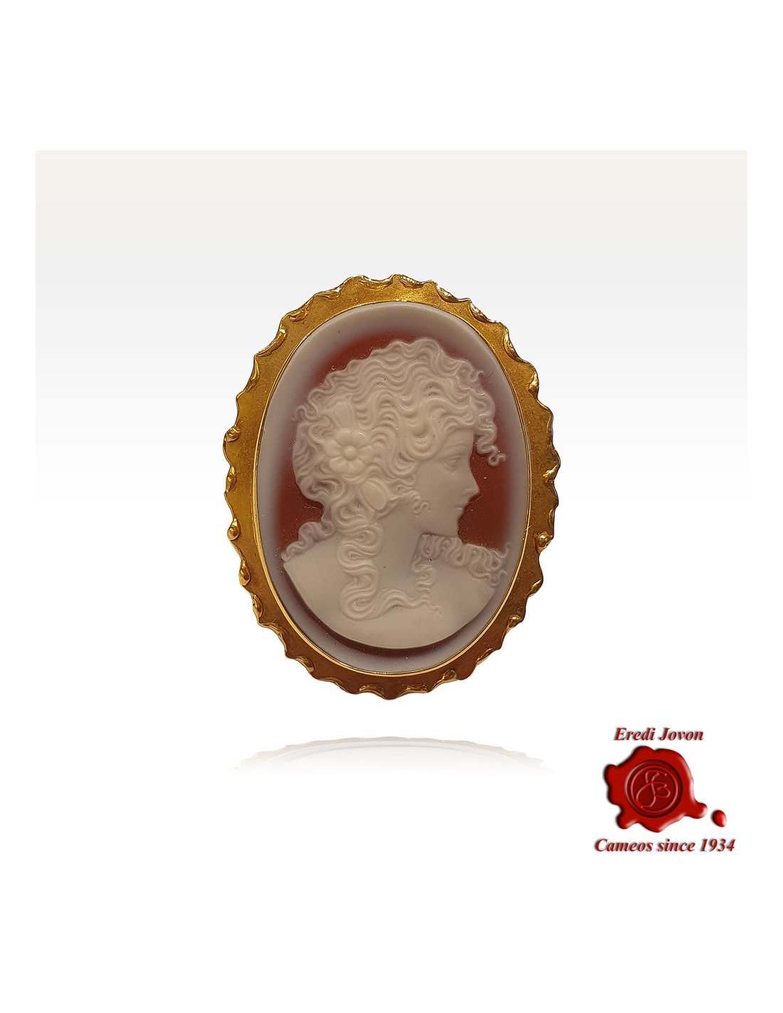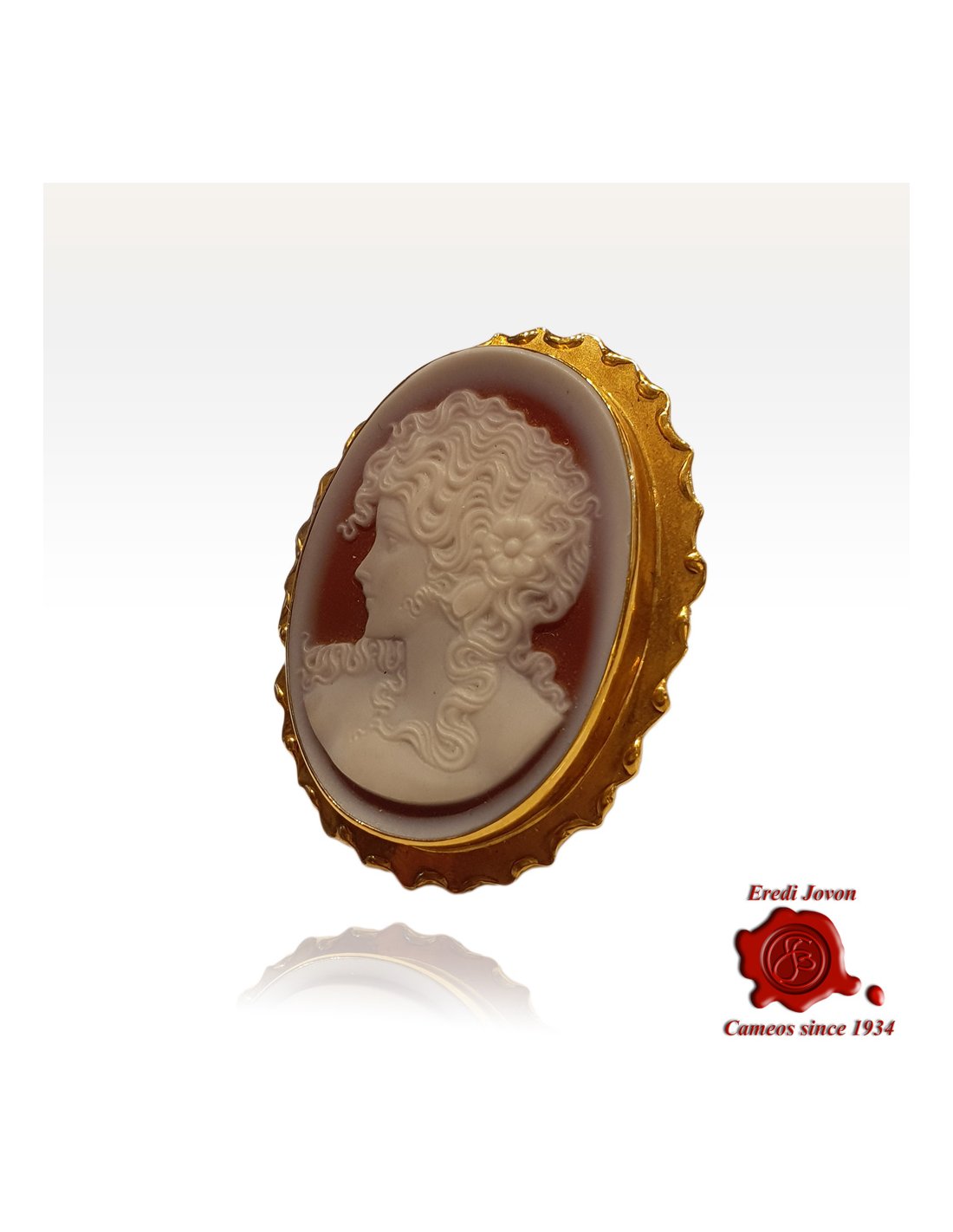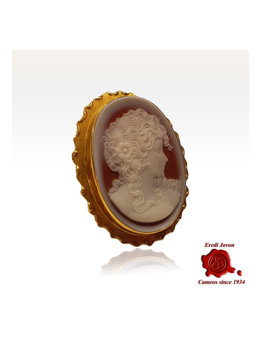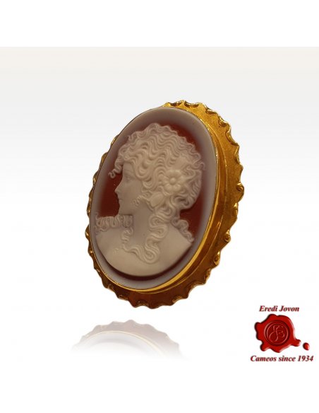 We present a vintage red agate cameo, showcasing a remarkable depiction of a floral lady. This exquisite piece serves as a brooch, pendant, and clasp for a pearl necklace. Its rarity lies in the red agate composition, adding a unique touch to any ensemble. Crafted with meticulous attention to detail, this accessory epitomizes elegance and sophistication. A true collector's item, this cameo is a testament to timeless beauty.