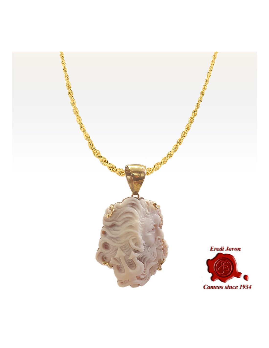 Description: By wearing this exquisite cameo, you carry with you an emblem of pure strength, capable of expressing your power in an inimitable way. Three-dimensional art gives the face of Poseidon an enveloping presence, transforming him into a majestic and powerful figure, with the trident emerging decisively, capturing every aspect of his imposing presence. Perfect for special occasions or to add a touch of class to every day, this jewel reflects the true spirit of Made in Italy craftsmanship, combining quality and creativity in a stunning and timeless design. A true tribute to the beauty and mystery of mythology, the Poseidon Cameo is designed for those who love to wear masterpieces that not only express style, but also tell a story of quality and uniqueness. Add this masterpiece to your collection today!