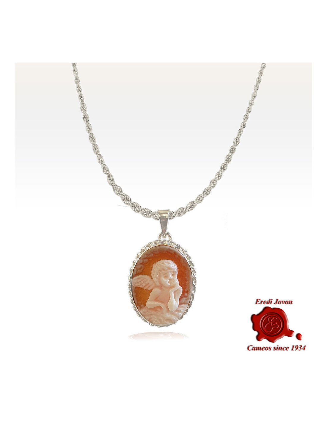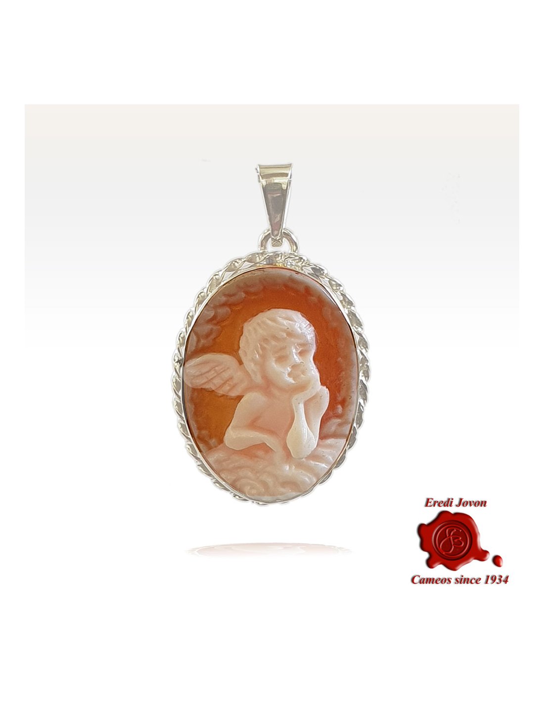 Raphael's Angel – Traditional Cameo, Pendant Only in 925% Sterling Silver - This exquisite pendant features a delicately hand-carved traditional cameo, depicting the famous thoughtful angel by Raphael Sanzio, inspired by the iconic masterpiece The Sistine Madonna. A work of art transformed into jewelry, embodying grace and contemplation.