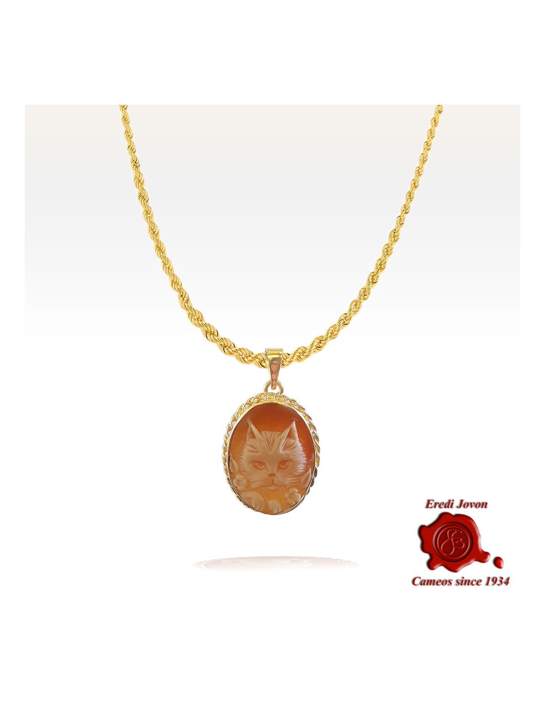 Description: A cute and impertinent kitty comes to life in this evergreen charm cameo: a small and special piece of jewelry, made for those who want to stand out with an unconventional jewelry, for those who want a unique and inimitable cameo. Very appropriate as a gift for cat lovers or for those who want to carry a symbol that shows the independence and gentleness that these animals represent in toto. This lucky charm also adds a touch of glam to any look, from the most casual to the most elegant. Mounted on yellow gold and with a cameo engraved entirely by hand using the traditional “burin” technique, it is a small masterpiece that tells of Made in Italy excellence. A piece that excites, amuses and conquers even those who did not expect it.