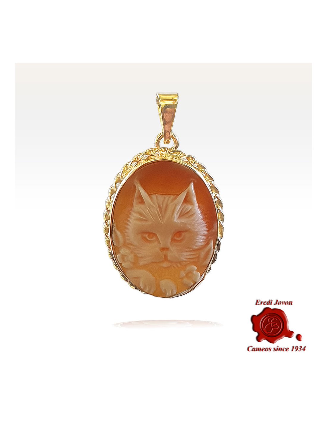 A delightful, sly kitten face in a piece of jewelry - a very special cameo for those who want something not taken for granted and at the same time unique. Mounted on yellow gold and totally hand-engraved with old-fashioned “burin” mastery and respectful of the centuries-old rules of TRUE Italian cameo.