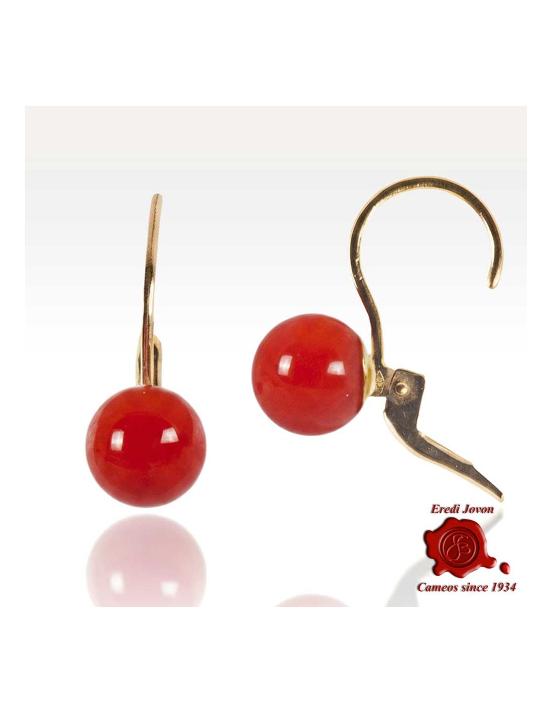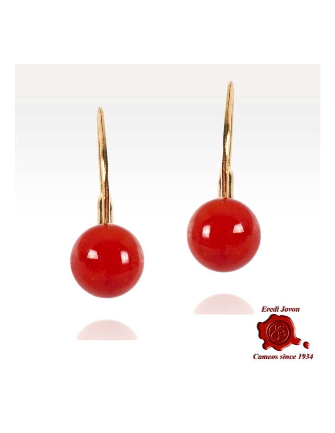Red Coral dangle Earrings Round Beads in 18 kt. Gold - Real red italian mediterranean coral complete round beads set in gold 18 kt. dangle earrings.