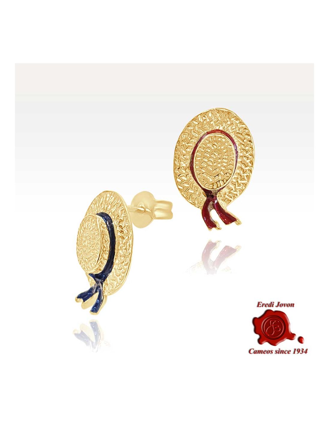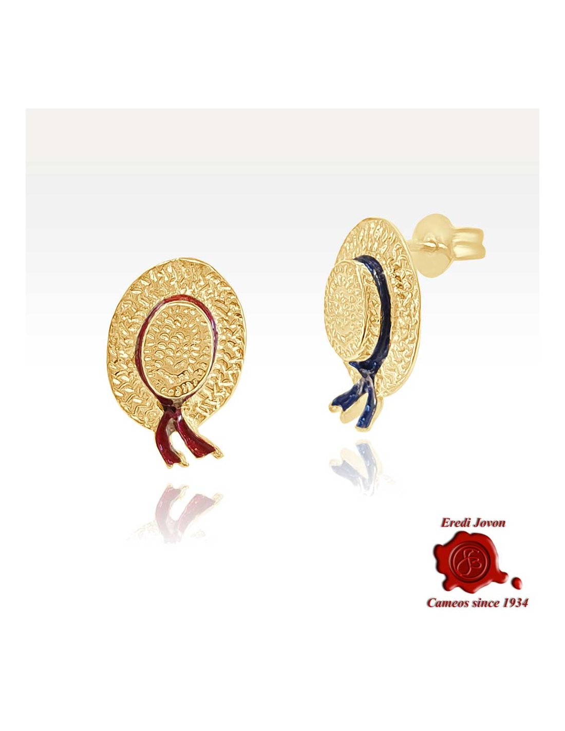 Description: These exclusive handcrafted earrings by Eredi Jovon draw inspiration from the famous gondolier's hat, an authentic and recognizable symbol of Venice. Crafted with scrupulous attention to detail, each jewel elegantly and originally reproduces this iconic element of Venetian tradition, reinterpreting it in a precious and modern form. Thanks to the gold workmanship, the brilliance remains alive over time, ensuring a high level of quality while the practical butterfly clasp guarantees a perfect fit, offering comfort and security throughout the day. A refined option for those who want an accessory that goes beyond aesthetics, with an important meaning, capable of telling a unique story and expressing love for the lagoon culture. Perfect as a refined gift or as an elegant detail to enrich any outfit, they represent a timeless jewel, full of Venetian charm and magic, proudly signed by Eredi Jovon.