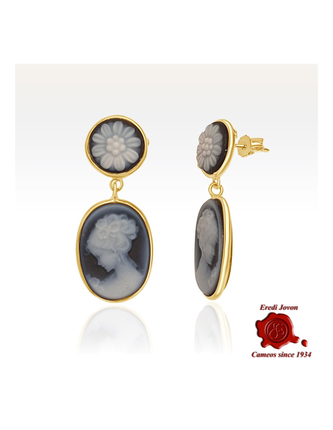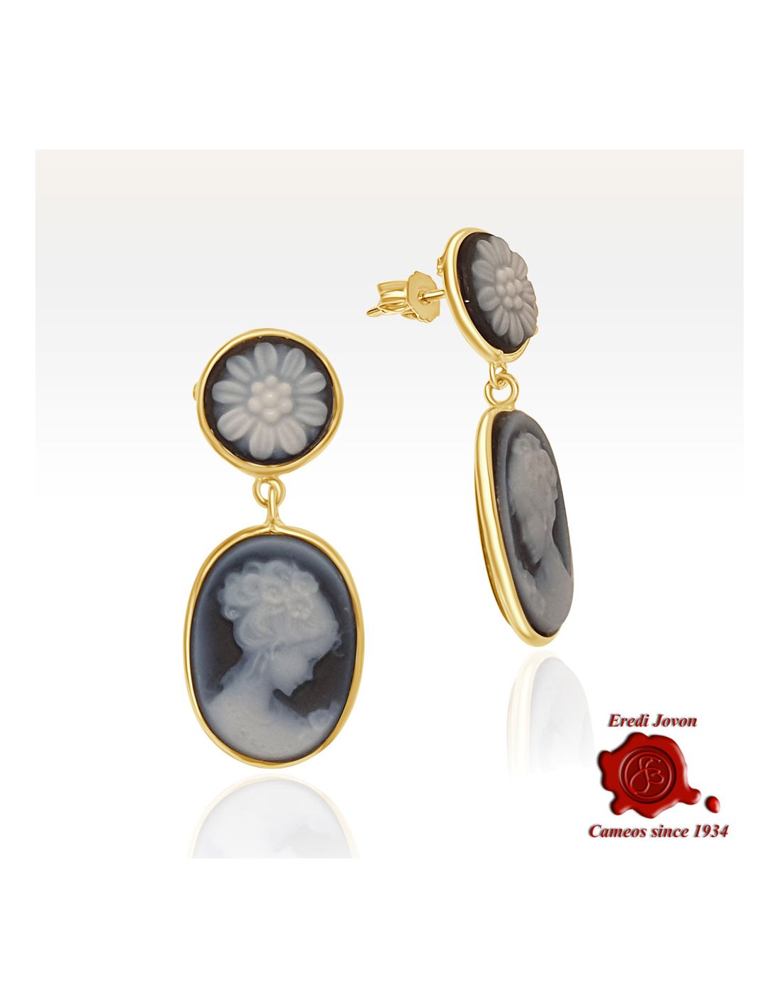 Descrizione: Lasciati incantare da questi esclusivi orecchini, un connubio perfetto tra l'arte classica e il fascino hollywoodiano senza dimenticare l'amore incondizionato dei veneziani per i giardini e i fiori. I due cammei, finemente intagliati a mano, raffigurano la figura di Venezia, ispirata al celebre dipinto di Tiepolo e una sempre amata margherita. Questo gioiello evoca la grandiosità senza pari della Serenissima, mentre rende omaggio al glamour delle icone degli anni '50 e alla grazia delicata delle margherite, emblema di amore puro e semplicità autentica. Con la loro base in oro giallo lucente, questi orecchini sono un pezzo esclusivo, pensato per chi desidera aggiungere un accento sofisticato e luminoso a qualsiasi outfit.