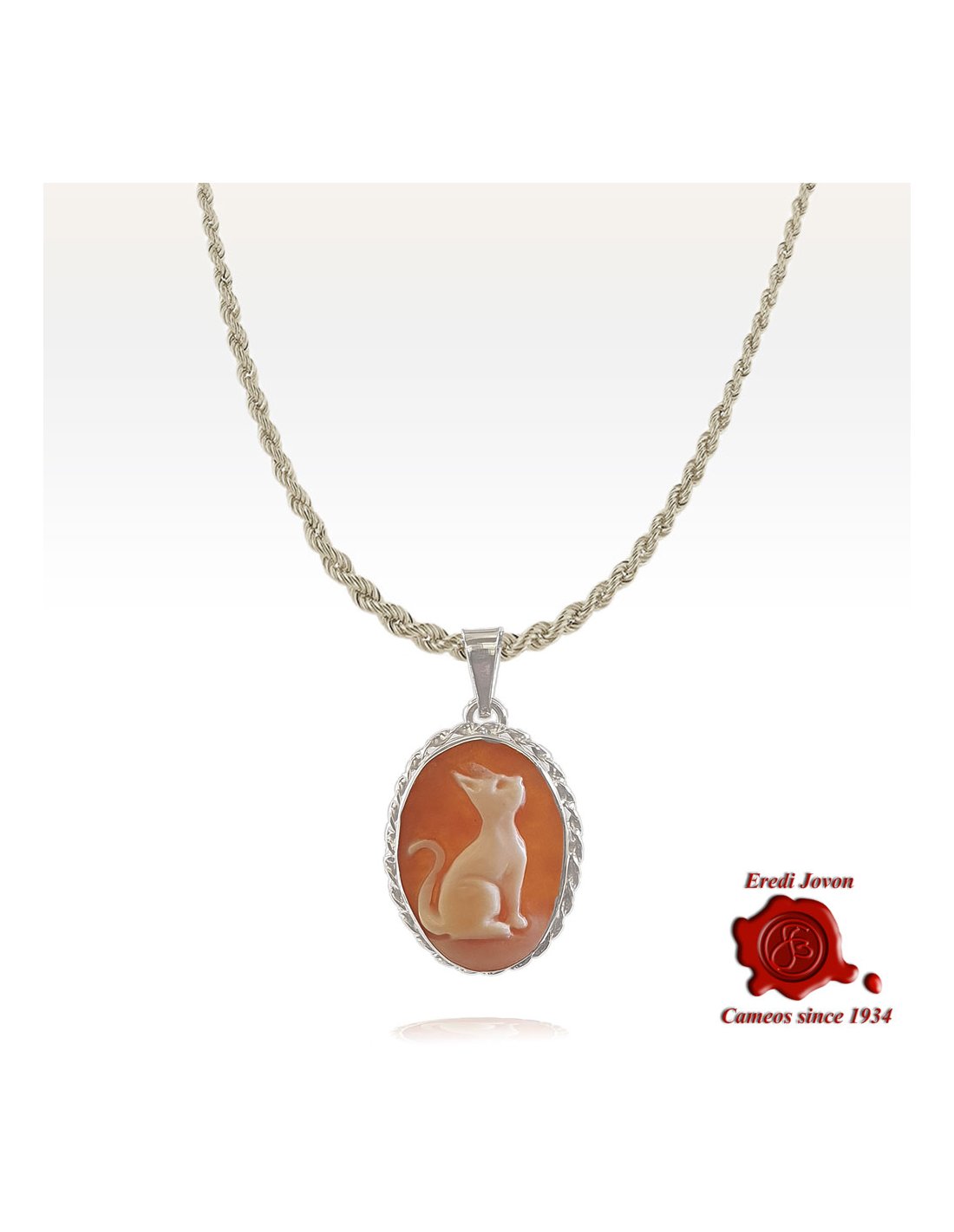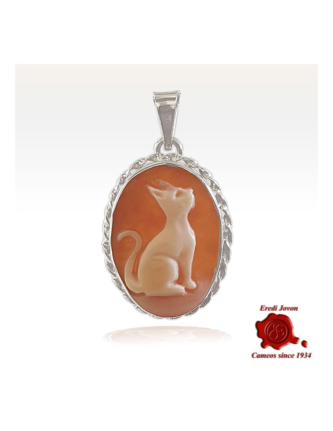 Cammeo Gatto che Chiama la Fortuna - un delizioso cammeo su argento con un simpatico gattino che con il suo sfacciato musetto impertinente sembra richiamare su di se coccole, attenzioni e, la leggenda vuole così, un pò di fortuna! Per chi ci crede o meno - sempre meglio averla dalla propria parte!