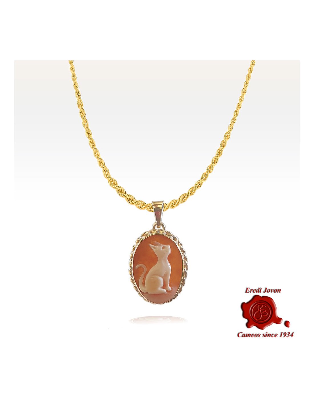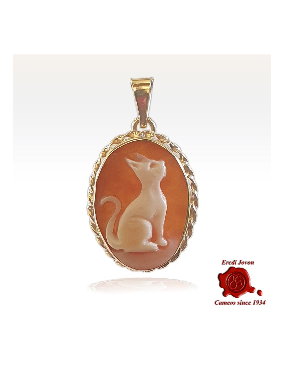 Cammeo d'oro con Gatto che da uno sguardo alla fortuna - uno splendido cammeo su oro giallo con un simpatico gattino il cui musetto impertinente sembra reclamare coccole, attenzioni e, secondo la tradizione, qualche sprazzo di fortuna! Per chi ci crede o no, è sempre meglio avere la fortuna dalla propria parte!