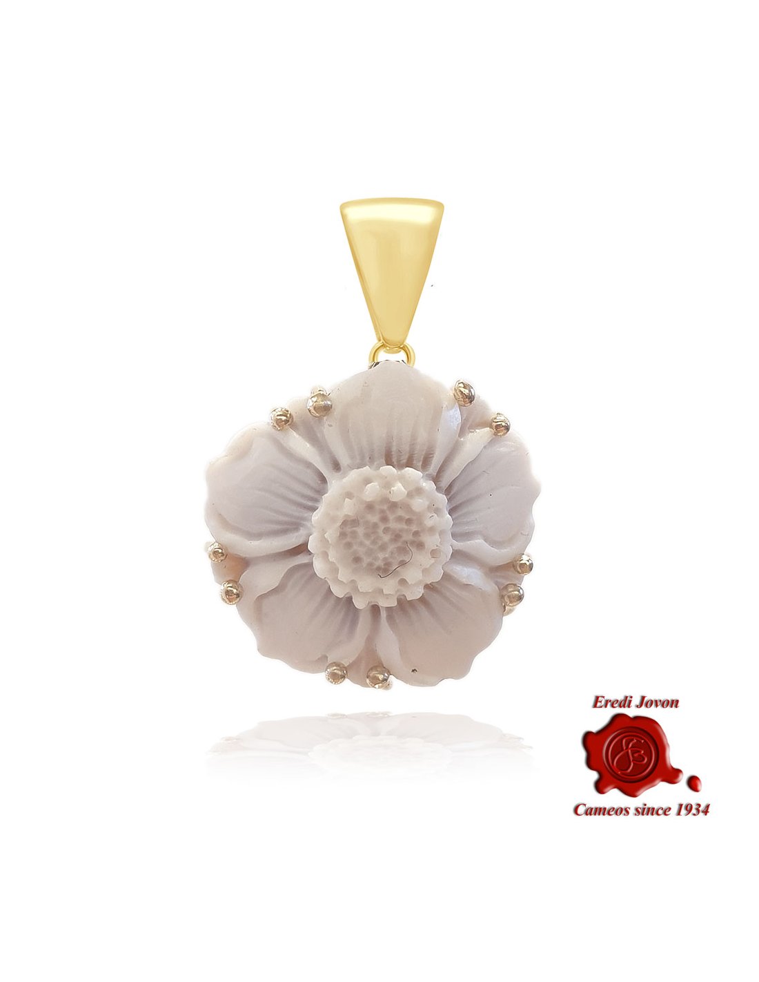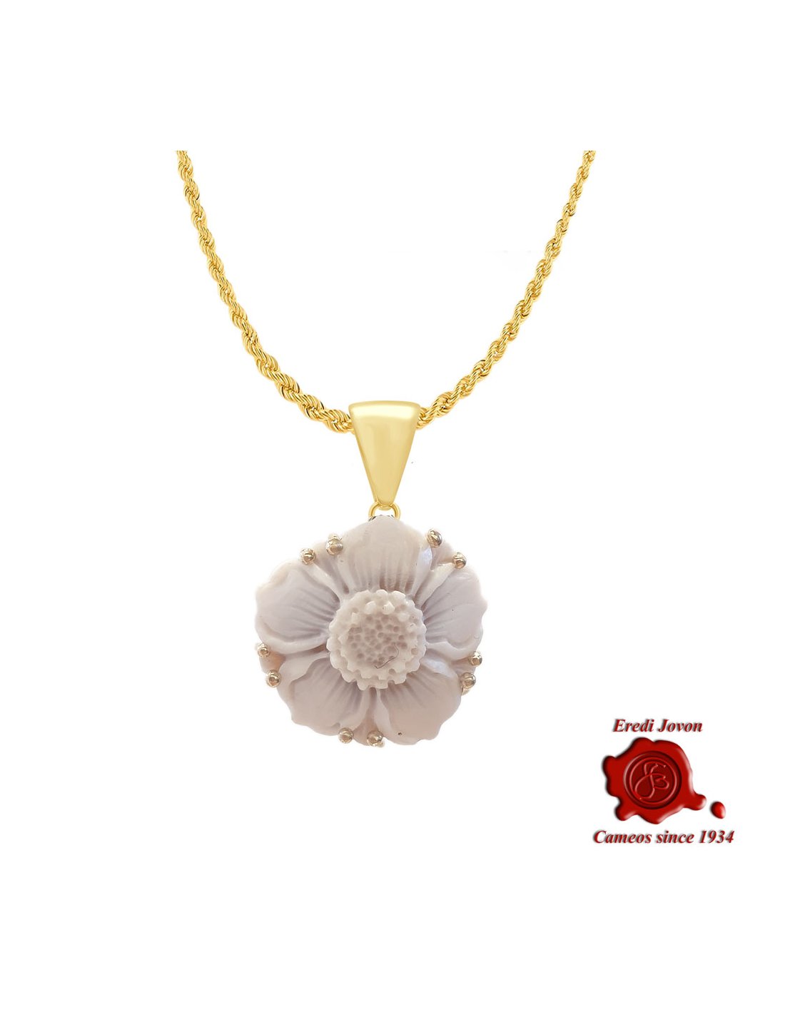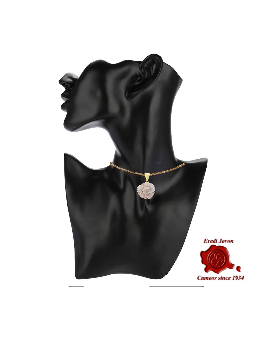 Cammeo Con Fiore Margherita Un cammeo che celebra la bellezza fragile e sofisticata della natura, scolpito con eleganza e precisione: il fiore di margherita, scolpito con maestria a mano usando la tecnica "sfioccato", diventa una vera e propria creazione artistica che esalta la maestria dell'artigianato italiano, con ogni dettaglio che racconta una storia di tradizione e passione. Realizzato in oro, un ciondolo che irradia una bellezza classica e raffinata, destinata a durare nel tempo. Ogni dettaglio, realizzato con cura e dedizione, è un'autentica celebrazione dell'eccellenza e della raffinatezza artigianale, rendendo questo cammeo ideale sia come regalo speciale che come pezzo distintivo da indossare in ogni occasione.