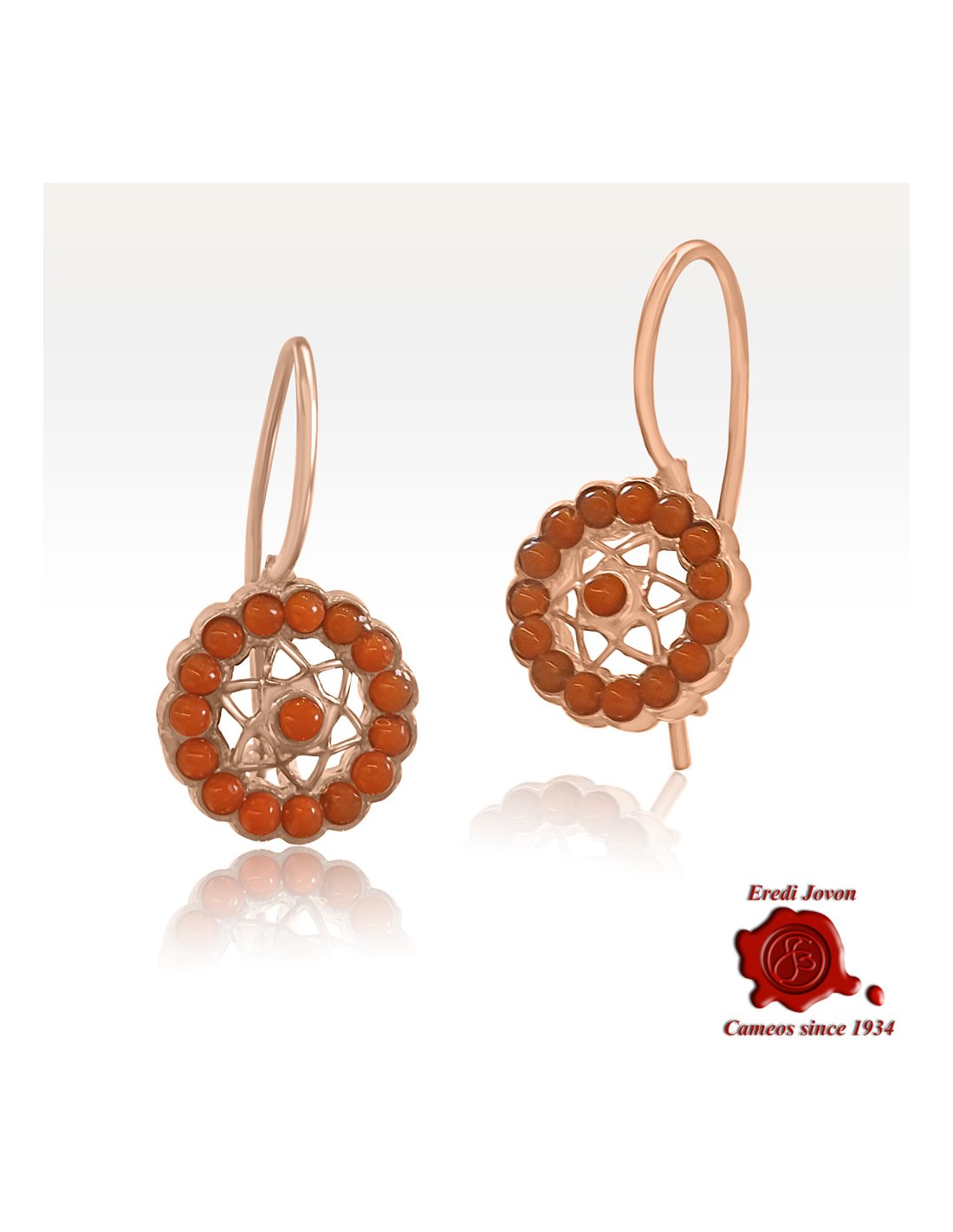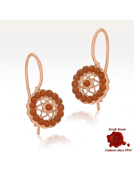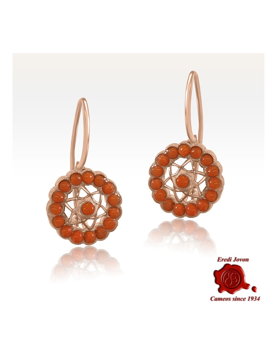 Orecchini Pendenti in Corallo Rosso con Filigrana Dorata in Oro Rosa - Questi orecchini sono realizzati con cura artigianale e presentano un design elegante e raffinato. Il corallo rosso, con la sua tonalità intensa e vibrante, conferisce un tocco di colore e stile al gioiello. I pendenti filigrana aggiungono ulteriori dettagli di bellezza.