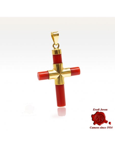 Nella versione regolare, la croce è composta da bacchette di corallo di circa 3 mm di diametro, perfetta per chi ama un gioiello discreto e raffinato. La versione grande, con corallo di circa 4 mm e una struttura in oro più robusta, dona invece un carattere deciso e importante, ideale per chi desidera un accessorio dal forte impatto visivo.
