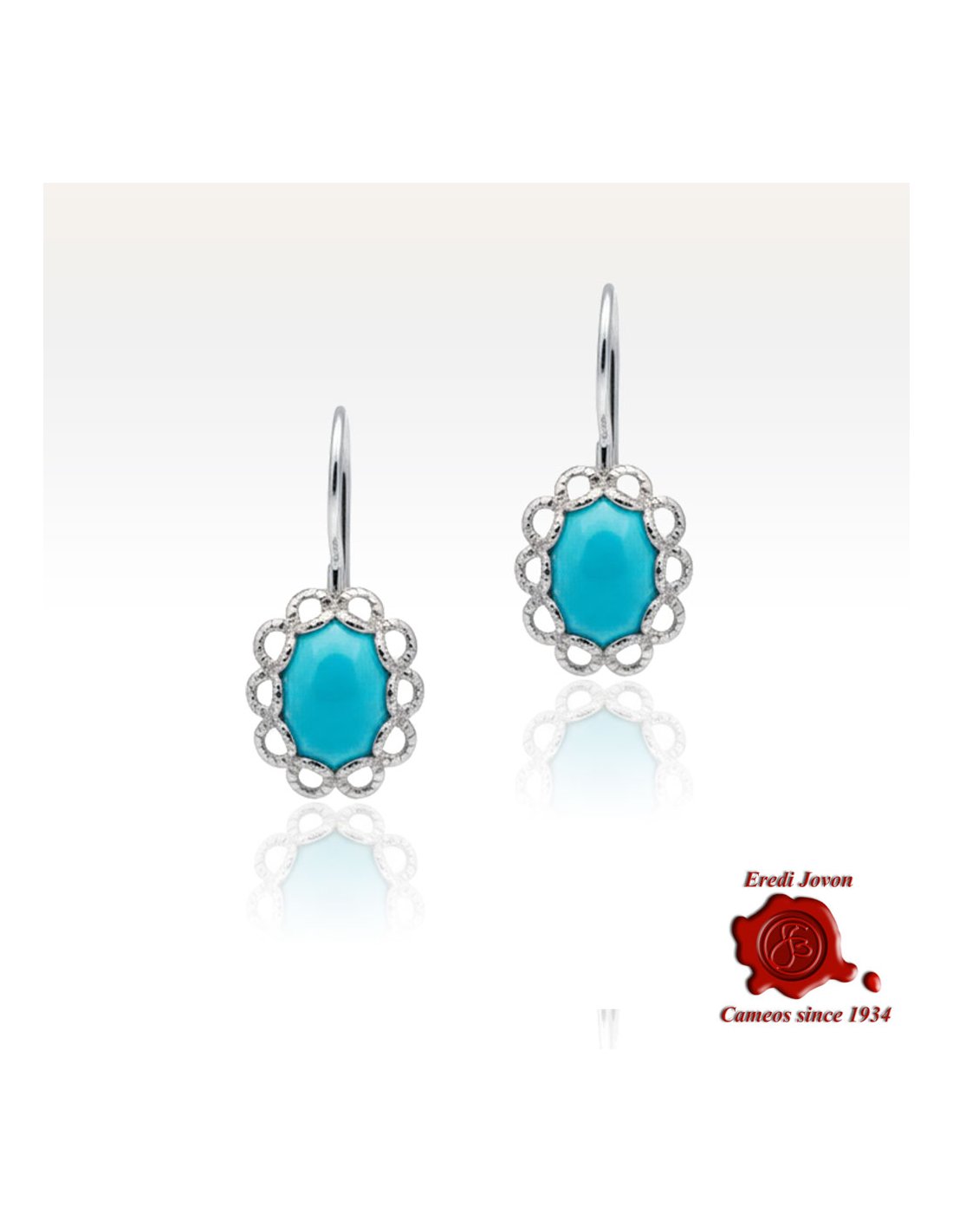 Descrizione: Un gioco di luce e armonia dà vita a questi Orecchini Pendenti in Argento con Turchese Naturale, creazione che unisce eleganza senza tempo e artigianalità autentica. Nati dal sapere dei maestri orafi italiani, raccontano la sensibilità del gesto e la purezza che solo la creazione a mano sa custodire. L’argento, lucido e leggero, incornicia la pietra con un disegno sinuoso e arioso, impreziosito da dettagli che ricordano l’intreccio dei merletti antichi.