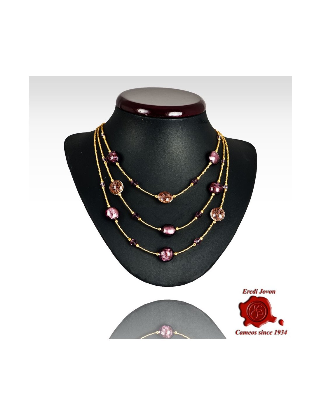 Centinaia di microperle, cristalli colorati e 9 perle rotonde schiacciate compongono questa collana d’impatto in vetro di Murano. Preziosa e ricca è elegante ad ogni età. Montata in metallo anallergico disponibile nella versione placcata argento oppure oro.